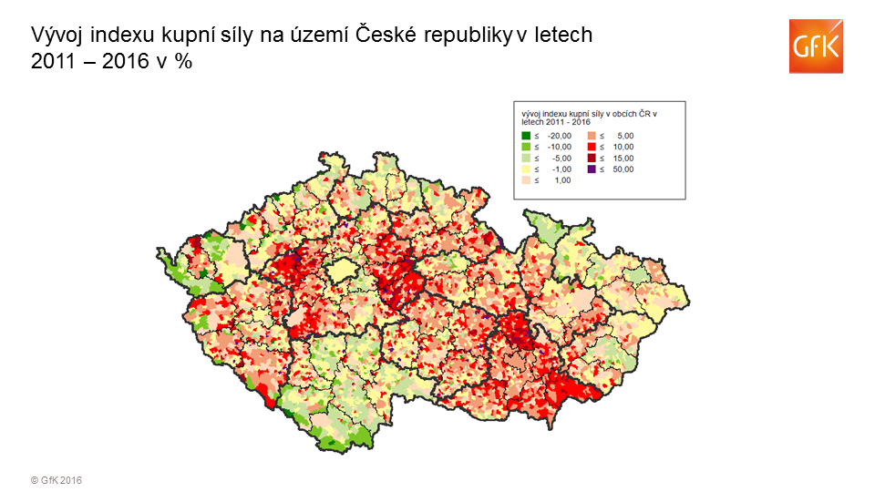 Údaje vyplývají ze studie společnosti GfK Czech „Kupní síla v okresech a obcích ČR 2016“.