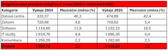 Celosvětové výdaje na IT letos vzrostou o 7,9 % na 5,43 bilionu dolarů