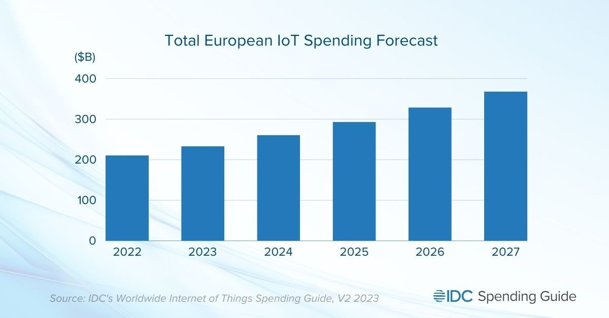 IDC odhaduje, že evropské organizace v roce 2024 investují do řešení souvisejících s internetem věcí přibližně 260 miliard dolarů. Růst výdajů na internet věcí bude podle IDC v roce 2024 a v dalších letech postupně nabírat na dynamice díky oživení evropské ekonomiky a zaznamená pětiletou složenou roční míru růstu (CAGR) ve výši 11,8 %. Do roku 2027 by tak měl trh dosáhnout hodnoty téměř 368 miliard dolarů.