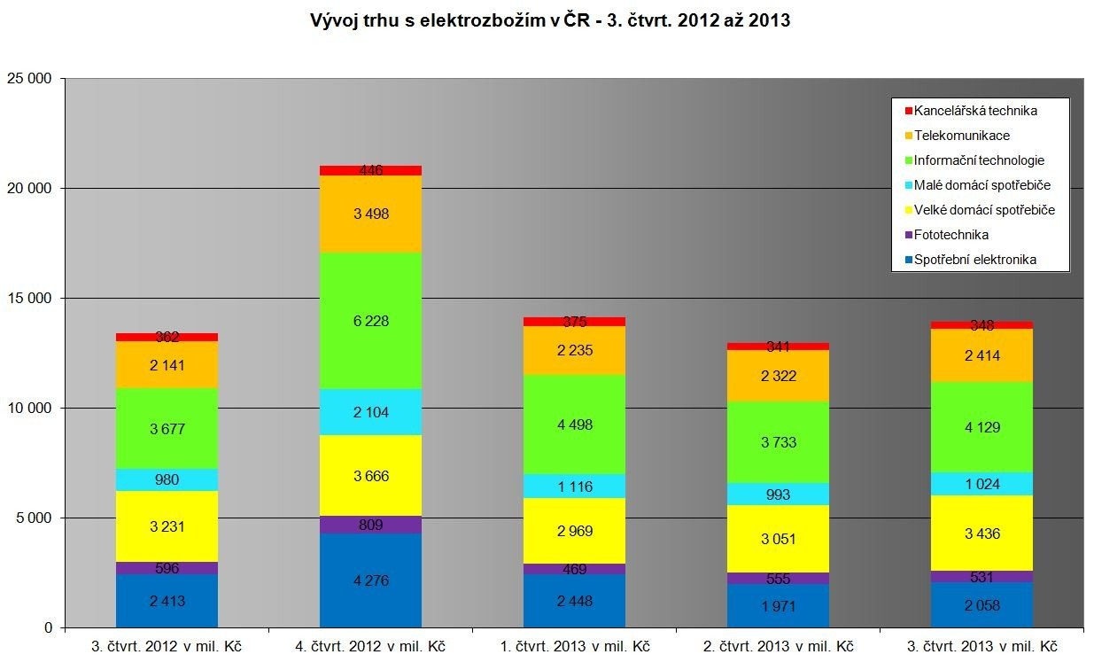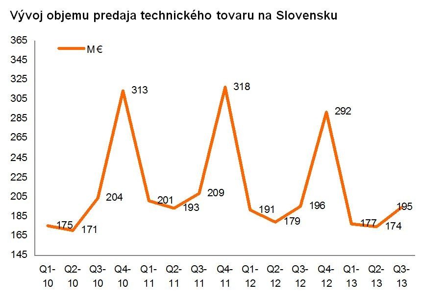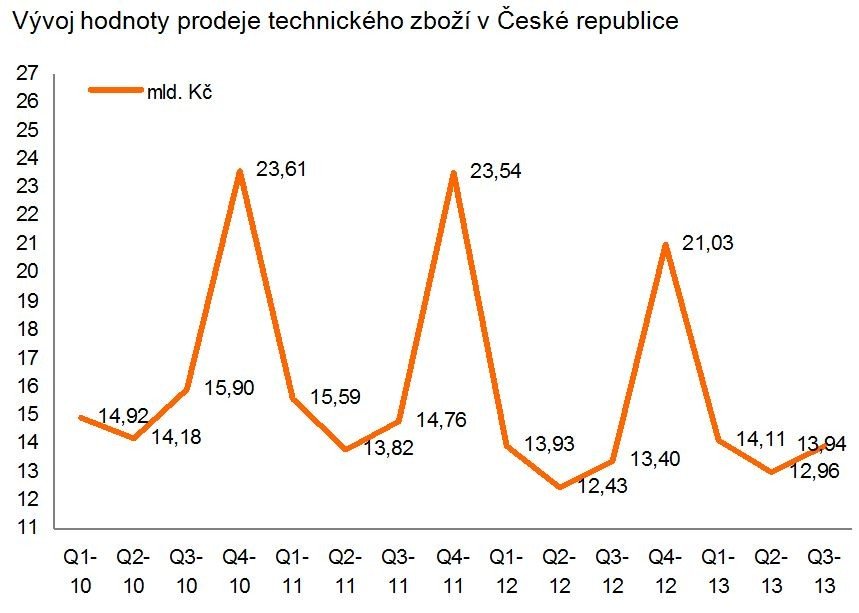 Ve třetím čtvrtletí roku 2013 se tempo růstu obratu trhu technického spotřebního zboží v ČR meziročně zvýšilo na více než 4 %. Na Slovensku naopak došlo k téměř 4% poklesu.