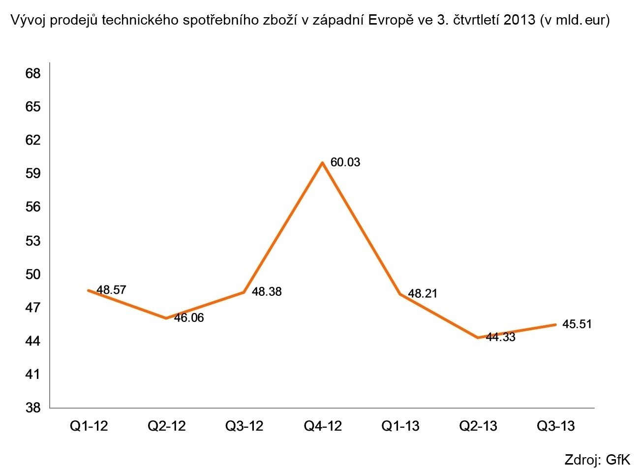 Celkové tržby na západoevropském trhu s technickým spotřebním zbožím ve 3. čtvrtletí roku 2013 dosáhly 45,5 miliard eur. V meziročním srovnání to znamená pokles o 5,9 %. Pozitivní vývoj zaznamenal pouze telekomunikační trh, všechny ostatní segmenty klesaly.