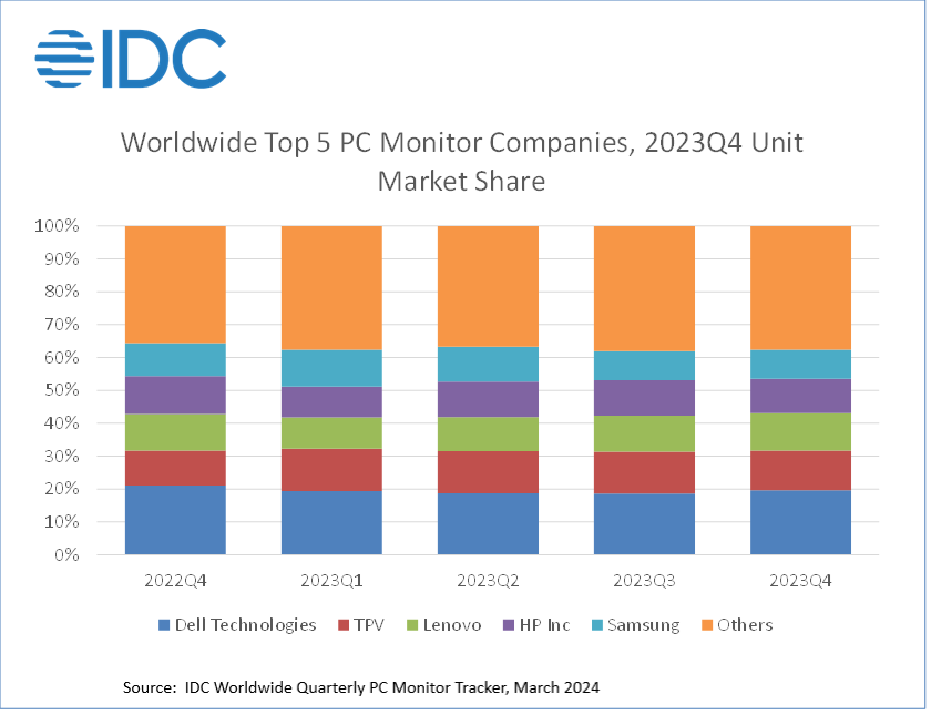 Herní monitory tvořily v roce 2023 téměř 16 % všech dodávek monitorů. Útlum v dodávkách herních počítačů dovolil zákazníkům více utrácet za doplňky a tvrdá konkurence v oblasti monitorů základní a střední třídy dále tlačila na snižování cen.