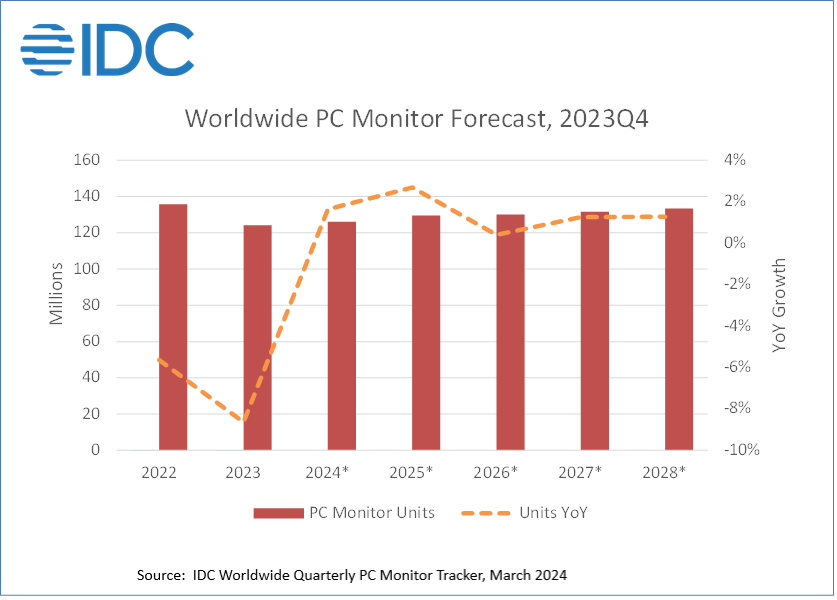 Vzhledem k návratu zásob na zdravou úroveň IDC očekává oživení objemu dodávek až do roku 2025. Nové modely monitorů s rychlejší obnovovací frekvencí, klesající ceny modelů s většími obrazovkami a pokračující zájem o herní segment jsou jen některé z faktorů, které oživení napomáhají.