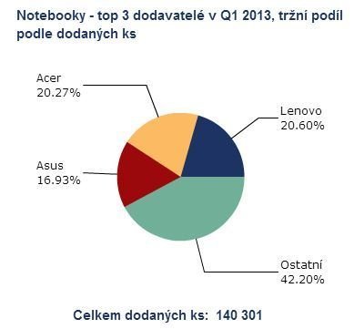 Největší množství osobních počítačů dodala v prvním čtvrtletí na český trh společnost HP. Společnost HP je také dlouhodobě jedničkou na trhu klasických stolních počítačů (desktopů). Prvenství na trhu notebooků patřilo poprvé v historii společnosti Lenovo, která se posunula ze třetího místa.