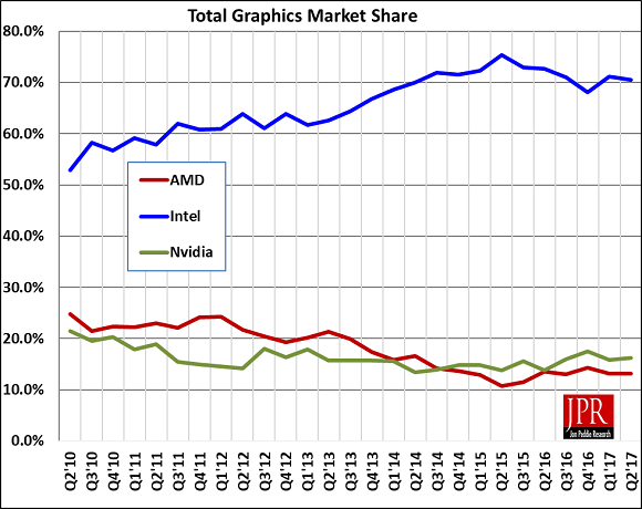 JPR: Prodej grafických čipů ve 2. čtvrtletí roku 2017 rostl