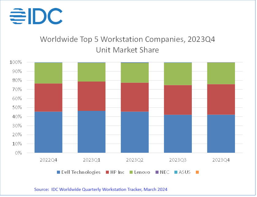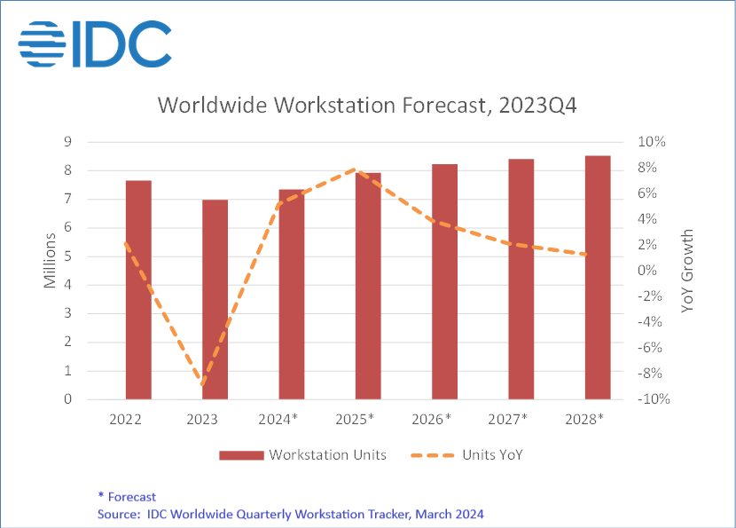 Celosvětový trh stolních a přenosných pracovních stanic zaznamenal na sklonku roku 2023 mírné oživení, přičemž ve čtvrtém čtvrtletí dodávky podle IDC dokonce meziročně vzrostly (o 6,1 % na 1,85 milionu zařízení).