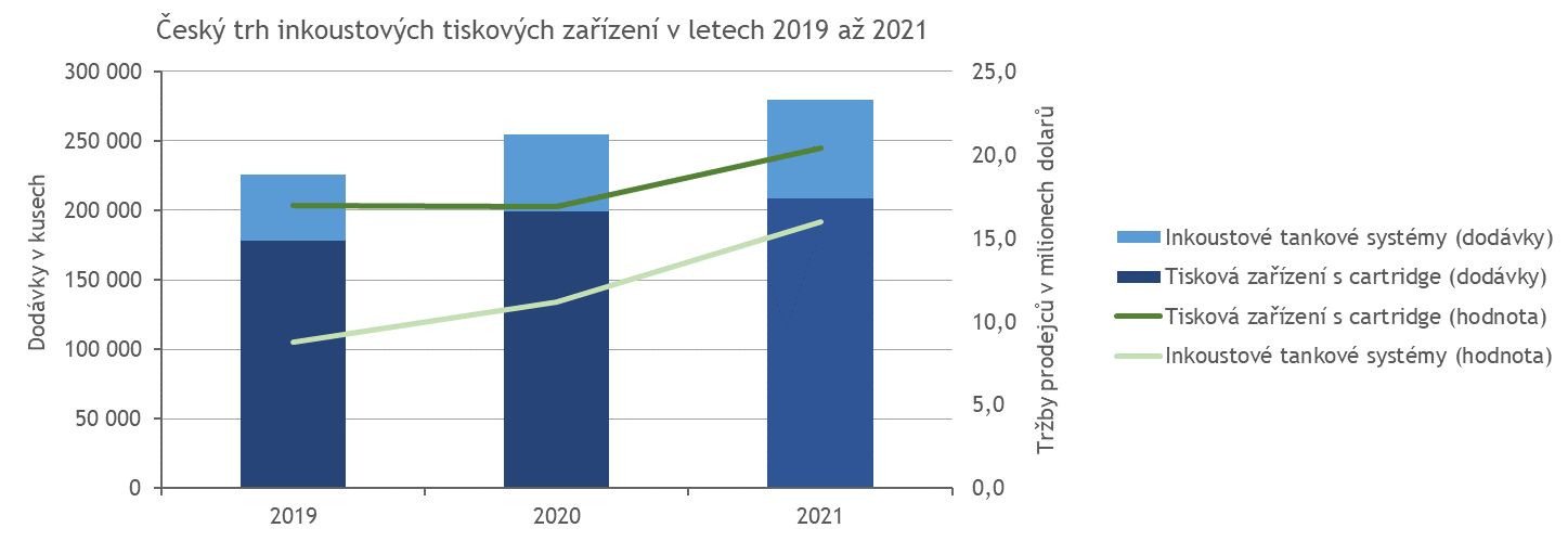 Segment inkoustových tiskáren a multifunkcí na tuzemském trhu zaznamenal v loňském roce 9,8% meziroční nárůst odbytu a 28,9% nárůst příslušných tržeb dodavatelů. Téměř 60 % zařízení ale patřila mezi základní modely s koncovou cenou nepřevyšující hodnotu sta dolarů (přibližně 2 170 Kč).
