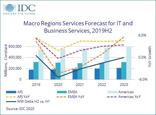 Celosvětový trh IT a byznysových služeb vloni vygeneroval ve srovnání s rokem 2018 pětiprocentní meziroční nárůst tržeb (a při zohlednění vývoje měnových kurzů by to aktuálně bylo 2,4 %). Růst se očekával i letos. Kvůli šíření nákazy COVID-19 však nakonec bude podle IDC všechno jinak.