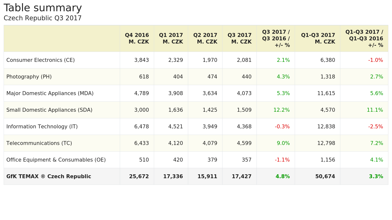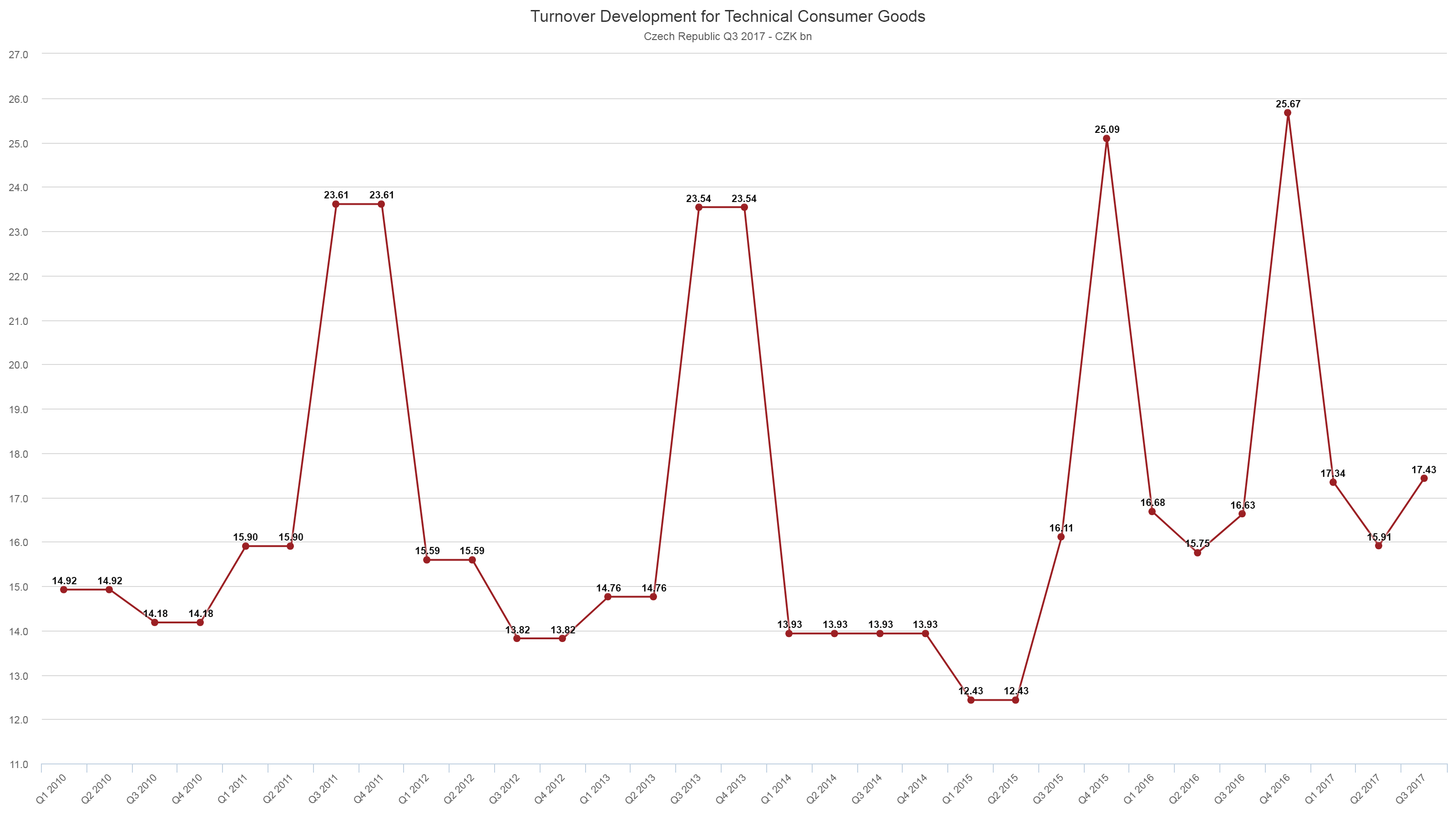 Trh s technickým spotřebním zbožím zaznamenal v České republice za třetí čtvrtletí roku 2017 ve srovnání se stejným obdobím předchozího roku nárůst téměř o pět procent.
