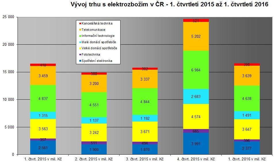 Trh technického spotřebního zboží v České republice zaznamenal za první čtvrtletí roku 2016 ve srovnání se stejným obdobím předchozího roku přírůstek mírně přesahující 3 %. Na Slovensku trh spotřebního zboží vykázal nárůst o víc než 8 %.