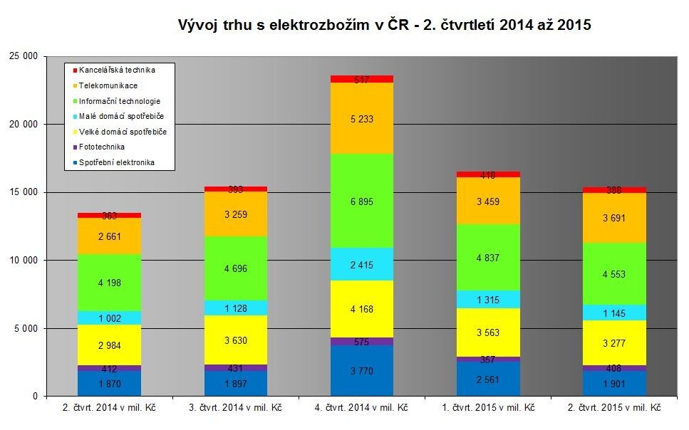 Obrat sektoru zaznamenal ve druhém čtvrtletí roku 2015 dvouciferný meziroční nárůst, a udržuje si tak téměř identický vývoj z předcházejícího čtvrtletí. Nadále se zvyšuje poptávka po chytrých telefonech, které tvoří klíčovou kategorii v sektoru.