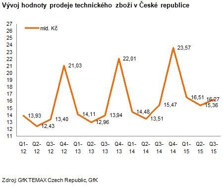 I ve třetím čtvrtletí vykázal v České republice trh technického spotřebního zboží pozitivní vývoj, i když tempo meziročního růstu se zpomalilo na 5,5 % oproti dvouciferným nárůstům v předchozích čtvrtletích. Slovenský trh technického spotrebného tovaru vzrástol medziročne v treťom štvrťroku o viac ako 5 % z hľadiska hodnoty.