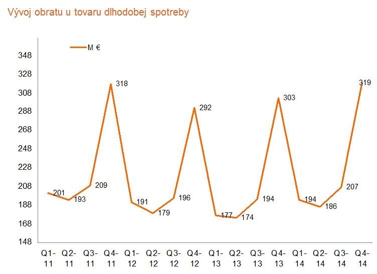 Pozitívny vývoj trhu s veľkými domácimi spotrebičmi na Slovensku naďalej pokračoval aj vo štvrtom kvartáli roku 2014. K medziročnému nárastu 16,5 % prispeli všetky produktové skupiny, pričom najdynamickejší vývoj bol zaznamenaný u sušičiek, práčok, chladničiek a mrazničiek. Trh rástol predovšetkým vďaka výraznejšie pozitívnejšiemu vývoju internetu oproti tradičnému predaju.