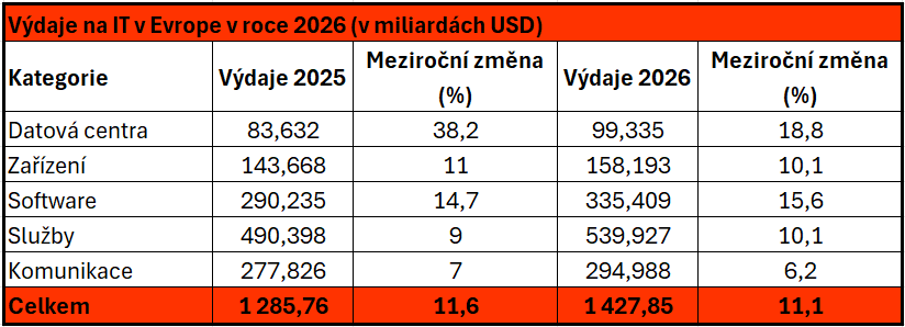 Výdaje na IT v Evropě v roce 2026 vzrostou o 11 %