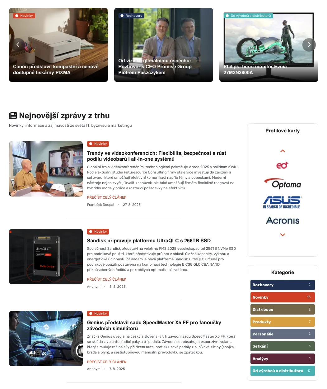 - Výrobci a distributoři si mohou na portálu aktivovat tzv. Profilovou kartu, tedy vlastní vyhrazený prostor pro propagaci své společnosti, který je snadno přístupný z různých částí webu.