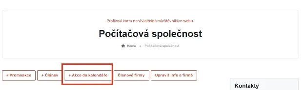 - Vše probíhá prostřednictvím tlačítek na profilu společnosti (případně v daných sekcích portálu).