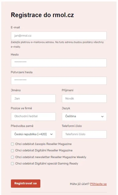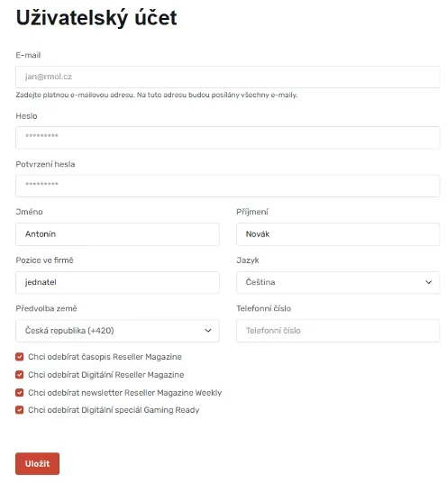 - Pro plnohodnotné využívání všech funkcí portálu a nastavení odběru našich médií (tištěného či digitálního Reseller Magazinu a newsletterů) musíte být na portálu zaregistrovaní.