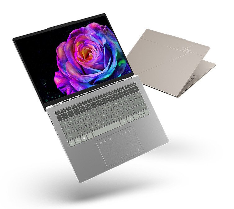 Nová řada Swift Go AI se vyznačuje novým designem šasi z eloxovaného hliníku s výrazným vzorem dvou šipek, který doplňuje výraznou ikonou AI na horním krytu. Prémiový design notebooků umocňují displeje OLED s rozlišením až 3K. Panely poskytují živé a realistické zobrazení s obnovovací frekvencí až 120 Hz a jsou certifikovány jako DisplayHDR TrueBlack 500 a Eyesafe 2.0. Navíc jsou u obou řad k dispozici dotykové displeje typu IPS. Nové notebooky Swift Go AI jsou také vybaveny infračervenou kamerou s rozlišením 1 440p QHD, podporou technologie DTS X: Ultra a soustavu tří mikrofonů, která čistý zvuk a obraz při online konferencích.