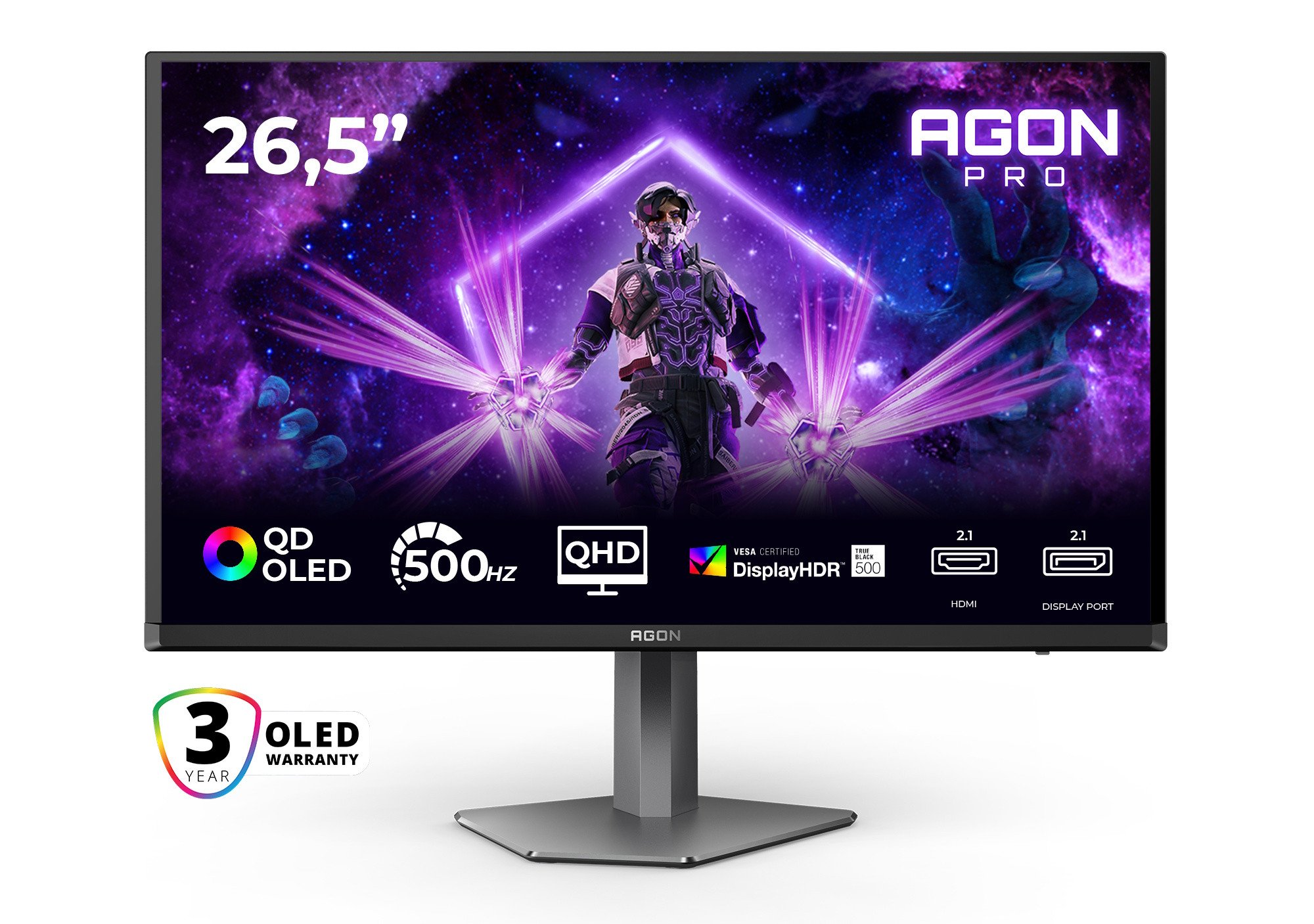 Značka AGON by AOC uvedla do prodeje 26,5" herní monitor AGON PRO AG276QKD2 s QD-OLED panelem 3. generace, který nabízí obnovovací frekvenci 500 Hz a dobu odezvy 0,03 ms GtG. Svými parametry tak osloví i profesionální hráče esportových titulů a nastavuje novou laťku pro špičkové soutěžní herní displeje.