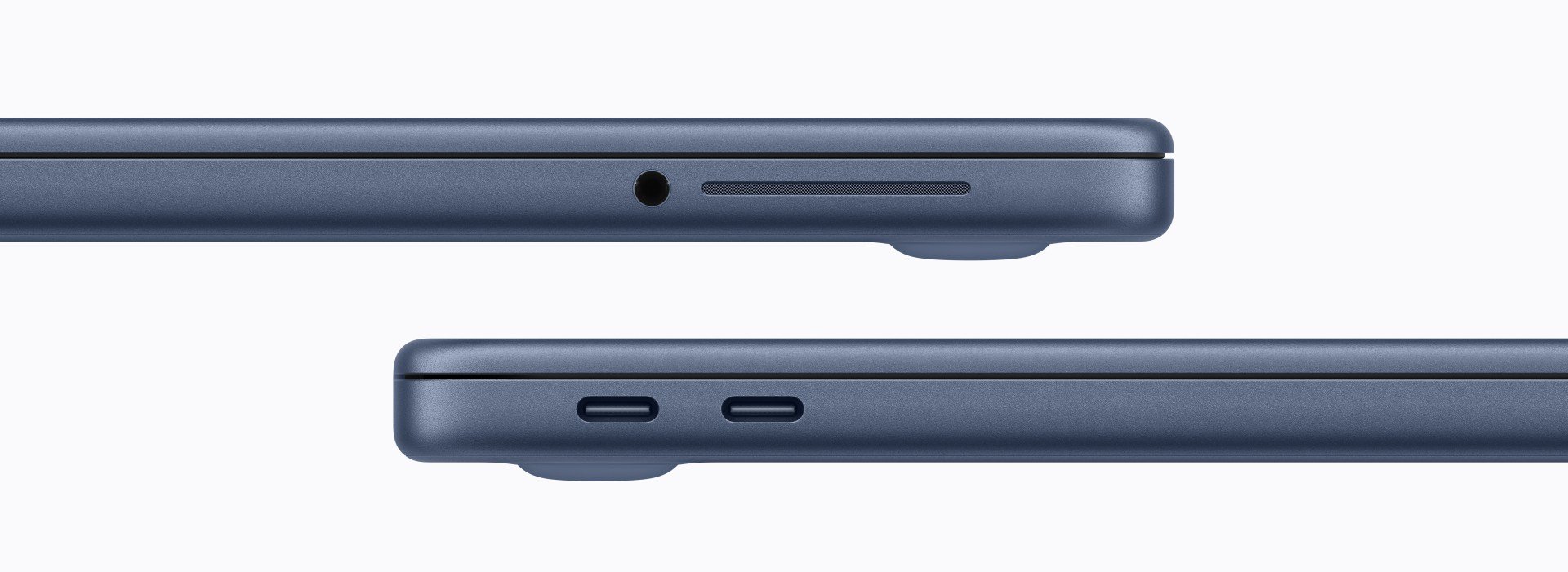 Šířka pásma jednotné paměti je také mnohem nižší než u MacBooku Air (60 GB/s oproti 153 GB/s). Dále chybí například MagSafe konektor pro magnetické dobíjení.