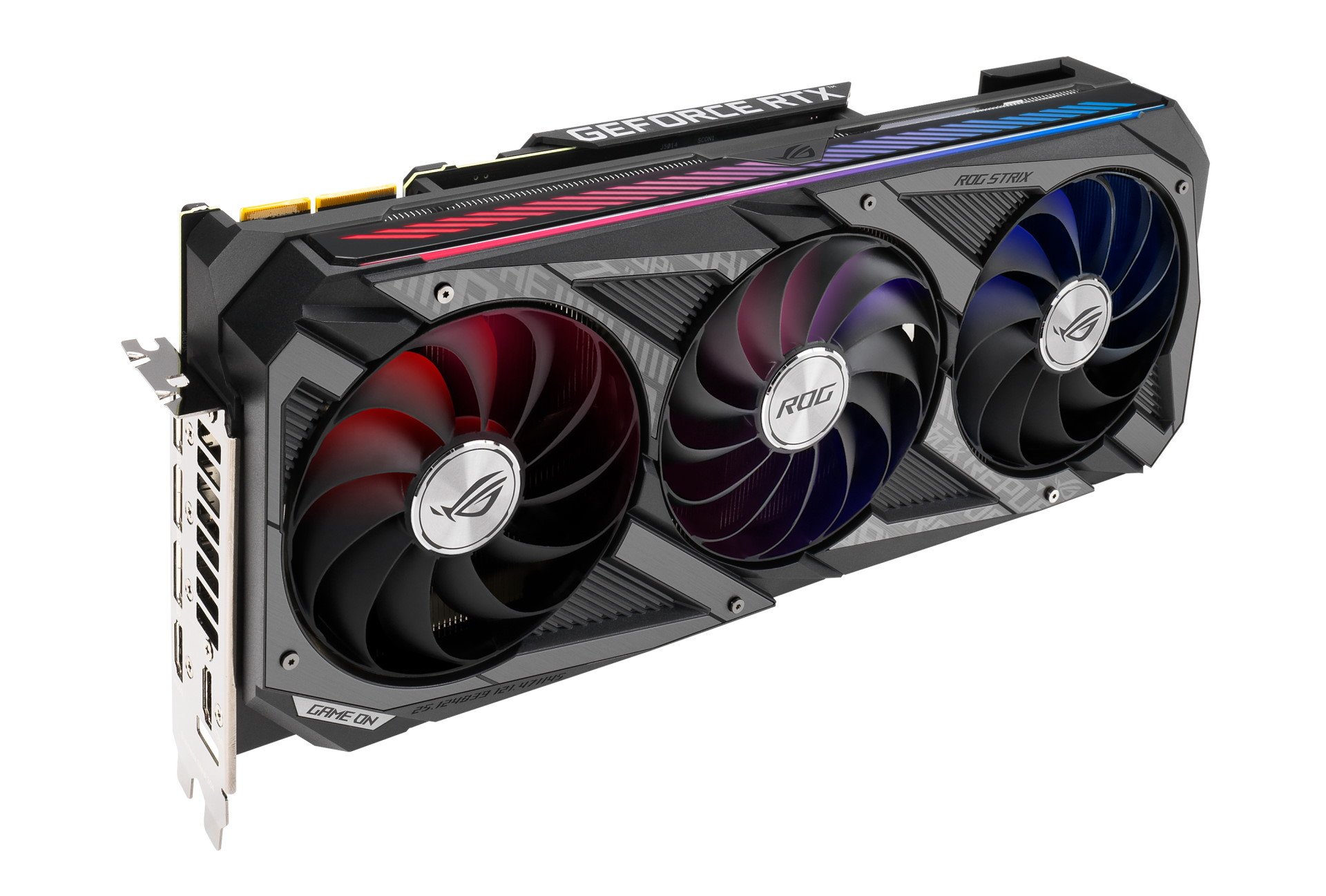 Nové grafické karty řady ROG Strix GeForce RTX 30 jsou založeny na nové architektuře NVIDIA Ampere, díky níž si mohou hráči užít plynulé hraní ve vysokém rozlišení i u nejnáročnějších her. Přepracováno a vylepšeno bylo také chlazení karet, jehož nové opláštění s kovovými akcenty obklopuje trojici Axial-tech ventilátorů. Větší chladič, který zabírá většinu 2,9 slotu karty, využívá zvýšeného proudění vzduchu. Technologie MaxContact umožňuje lepší kontakt a efektivnější přenos tepla. Vylepšeno bylo nejen chladicí pole, ale také kondenzátory, tlumivky a napájecí fáze dodávají stovky wattů v řádech milisekund. Karty obsahují headery FanConnect II, které umožňují vyladění ventilátorů PWM na základě teplot CPU a GPU, což lze využít při vyšší výpočetní zátěži. Uživatelé navíc mohou pomocí přepínače Dual BIOS vybrat mezi „výkonným“ a „tichým“ profilem bez speciálního softwaru.