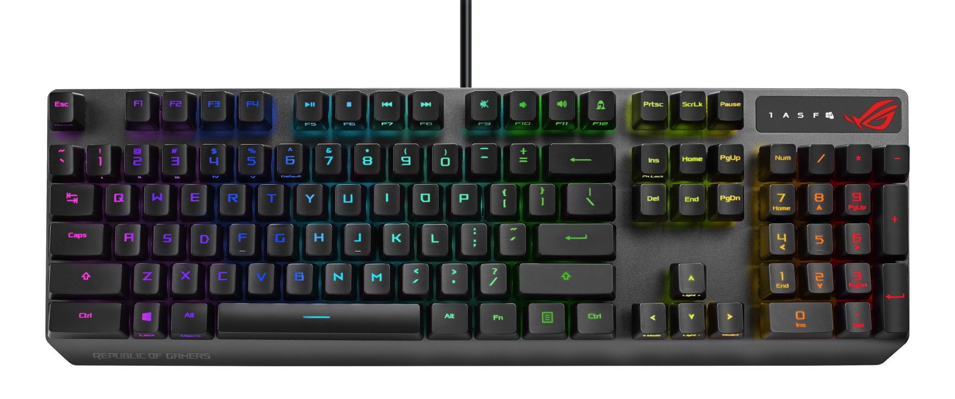 Klávesnice ROG Strix Scope RX využívá hliníkový vrchní kryt a je odolná proti vodě a prachu podle stupně krytí IP56. Je vhodná pro hraní FPS stříleček zásluhou rozšířené klávesy CTRL. Port USB 2.0 lze použít jako průchodka pro nabíjení zařízení nebo připojení externího úložiště. Speciální klávesa Stealth skryje všechny aplikace a ztlumí zvuk, čímž zajistí okamžité soukromí. Klávesnici zdobí podsvícené logo ROG a přizpůsobitelné světelné efekty. Softwarový nástroj Armory Crate umožňuje uživatelům nastavit si uživatelské profily podle svého, mapovat klávesové zkratky, zaznamenávat makra a dokonce sledovat hardwarové statistiky během hraní.