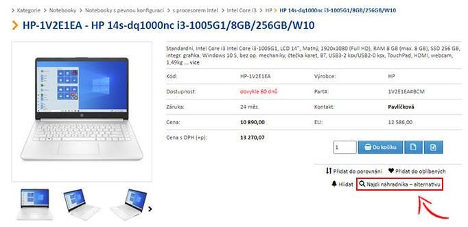 Systém na prvních místech nabídne produkty podobných nebo lepších parametrů – předvídá, jaký parametr je důležitý více či méně a podle toho vybírá náhradníky. Nalezené náhradníky nejen zobrazí, ale ukáže i přehledné porovnání parametrů vůči vámi vybranému produktu, seřadí parametry v daných kategoriích a barevně vyznačí, který parametr je lepší, stejný nebo slabší.