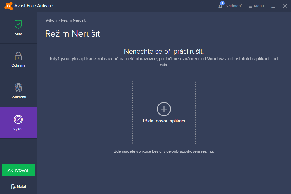 Nový režim Nerušit ztišuje upozornění aplikací třetích stran jako Windows, e-mail, chat nebo prohlížeče, když uživatelé používají režim zobrazení na celou obrazovku. Nová bezplatná funkce zařídí, že uživatele neruší jiné aplikace během pracovních prezentací před kolegy, nebo když hraje hry.