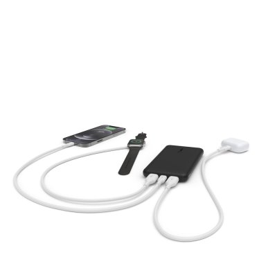 Powerbanka Belkin BoostCharge Power Bank 10K s kapacitou 10 000 mAh zvládá díky dvojici portů USB-A a jednomu portu USB-C souběžné nabíjení až tří různých zařízení kombinovaným výkonem až 15 W. Například uživatelé iPhonů 14/13/12 takto mohou prodloužit výdrž svých zařízení až o 40 hodin.