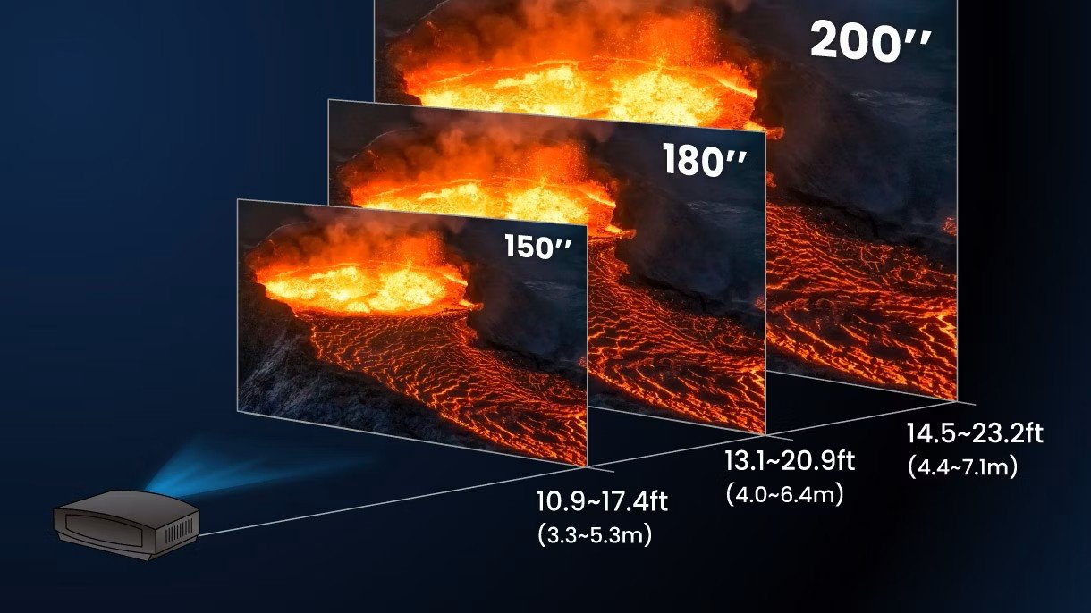 Projektor BenQ W5850 je navržen pro dokonalý filmový zážitek, kdy nastavuje nový standard až 200" obrazu na kratší vzdálenost, čímž je flexibilnější než konkurenti, kteří dosahující nižších maximálních velikostí. Je určen pro prémiové dedikované zatemněné prostory a vyznačuje se špičkovou přesností barev, skvělou hloubkou černé a univerzálním projekčním poměrem 1,0-1,6. Digitální čtyřsměrný lens shift, 1,6× motorizovaný zoom a laser se svítivostí 2 600 lumenů projektoru W5850 promítne 180" obraz ze vzdálenosti pouhých čtyř metrů ve vysoké kvalitě respektující 100 % barevného prostoru Rec. 709 a DCI-P3 s kalibrovanou odchylkou Delta E<2.