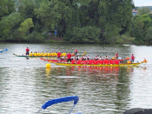 Jako první čekaly posádky dvě kvalifikační jízdy, ze kterých měla vykrystalizovat finálová čtveřice – dračích lodí závodilo rovných dvanáct, každá s posádkou 16-18 pádlujících, kormidelníka a bubenice. Zatímco první jízdu bylo možné označit za rozehřívací, ve druhé už se začaly dít věci! Rekord trati postupně překonala posádka Eaton a hned vzápětí i Fujitsu, přičemž se oběma podařilo stáhnout čas pod jednu minutu – to je na zhruba 200 metrové trati obdivuhodné.