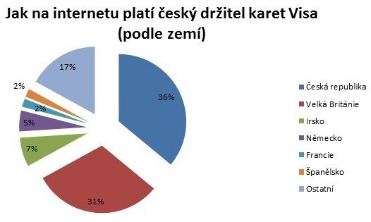 Více než 30 % nákupů, které provedou čeští držitelé karet Visa na internetu, je uskutečněno v britských e-shopech, 7 % v irských a 5 % v německých. Domácím e-shopům zůstává věrných zhruba 36 % zákazníků.