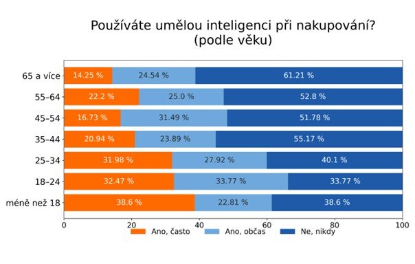 Téměř polovina Čechů (46,5 %) využívá umělou inteligenci jako podporu u nákupů a téměř pětina (18,4 %) ji za tímto účelem využívá často.