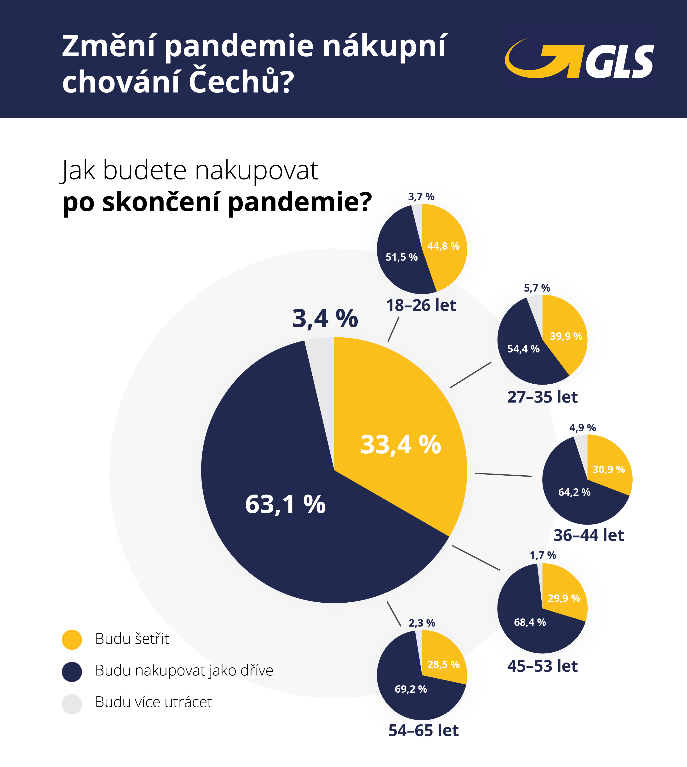 Z průzkumu vyplývá, že před propuknutím pandemie nakupovala nadpoloviční většina lidí (57 %) primárně v kamenných prodejnách. To se v loňském roce vlivem vládních nařízení kvůli pandemii koronaviru změnilo. Nadpoloviční většina respondentů (60 %) uvedla, že v roce 2020 přijímala díky nákupům na internetu více balíků než v předchozích letech. „V kamenných prodejnách byla zvyklá nakupovat především starší generace. Až 66 % lidí ve věku 54 až 65 let nakupovalo v obchodech. V loňském roce i starší lidé přešli na online nákupy a více než polovina z nich přijímala v roce 2020 více balíčků než dříve. Navíc mnoho doposud pouze kamenných obchodů spustilo své e-shopy,“ okomentoval výsledky průzkumuředitel GLS Česká republika Pavel Včela.