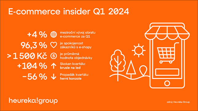 První čtvrtletí roku 2024 přineslo pokračující vzestup v oblasti e-commerce. Podle dat společnosti Heureka Group se po úspěšném závěru předchozího roku podařilo udržet pozitivní trend a první kvartál roku skončil s celkovým růstem tržeb o 4 % ve srovnání s předchozím rokem. Mírně se také zvýšila průměrná hodnota objednávky na 1 512 Kč.