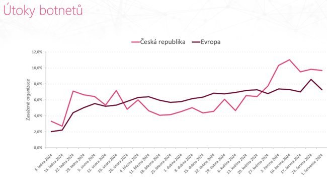 V průběhu května jsme zachytili i zvýšenou aktivitu botnetů a souvisejících útoků. Česká republika je častým cílem různých hacktivistických skupin, zejména z Ruska, které se snaží s pomocí výkonných botnetů narušovat chod organizací a způsobovat nedostupnost oblíbených webových stránek a služeb,“ řekl Lujka.