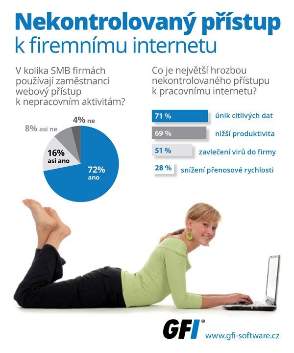 Společnost GFI Software zveřejnila výsledky průzkumu zaměřeného na zneužívání pracovního webového přístupu. Podle průzkumu se české SMB firmy nejvíce obávají úniku citlivých firemních dat a ztráty produktivity zaměstnanců.