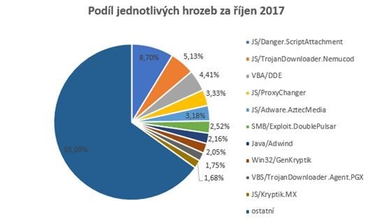 Deset nejčastějších internetových hrozeb v České republice za říjen 2017:
