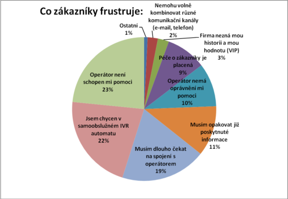 Zákazníky naopak nejvíce naštve neschopný operátor s nedostatkem pravomocí požadavky řešit. „Za frustrující to považuje 23 procent respondentů, což v žebříčku zákaznických frustrací staví nekompetentnost na první příčku,“ uzavřel Patrik Ort, odborník na péči o zákazníky firmy Genesys, která je součástí společnosti Alcatel-Lucent.