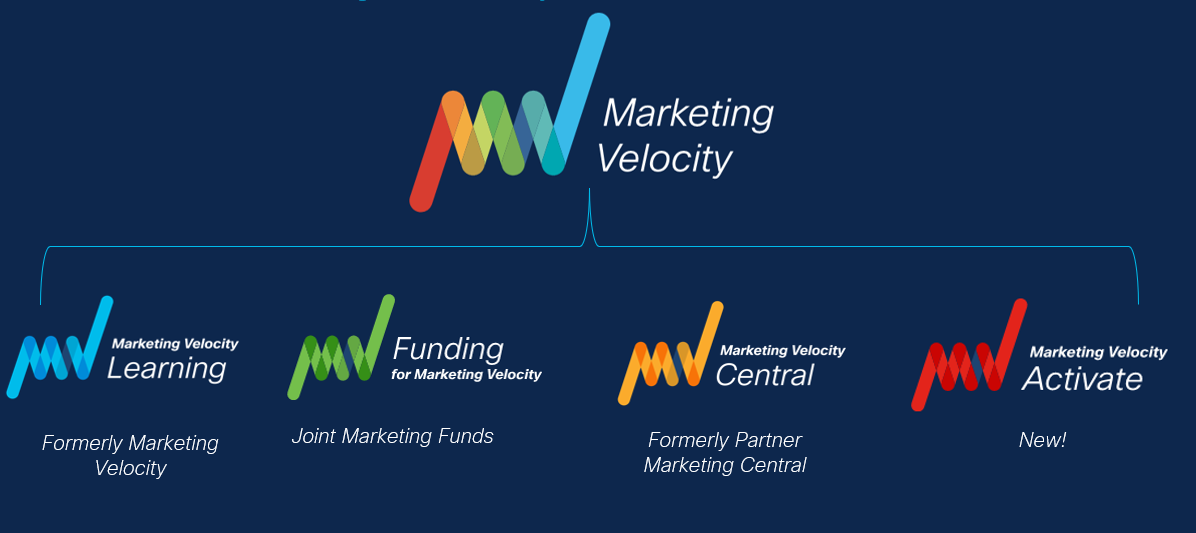 - Cisco Marketing Velocity Central: Marketing Velocity Central, dříve známý jako Partner Marketing Central, je marketingový portál s kompletní nabídkou služeb pro zvýšení efektivity marketingových aktivit partnerů. Jedná se o zdroj volně dostupných, přizpůsobitelných kampaní, zahrnujících automatizované e-mailové cesty, obsah pro sociální média či webovou syndikaci i databázi dalších zdrojů s marketingovým obsahem. Portál nabízí pokročilé možnosti analýzy kampaní včetně jejich trackingu a měření míry aktivity zákazníků pomocí metriky customer contact engagement scoring. Partneři mohou také procházet databázi vybraných agentur a objednat si jejich služby, ať už se jedná o placené vyhledávání (paid search), aktivaci sociálních médií či tradiční telemarketing.