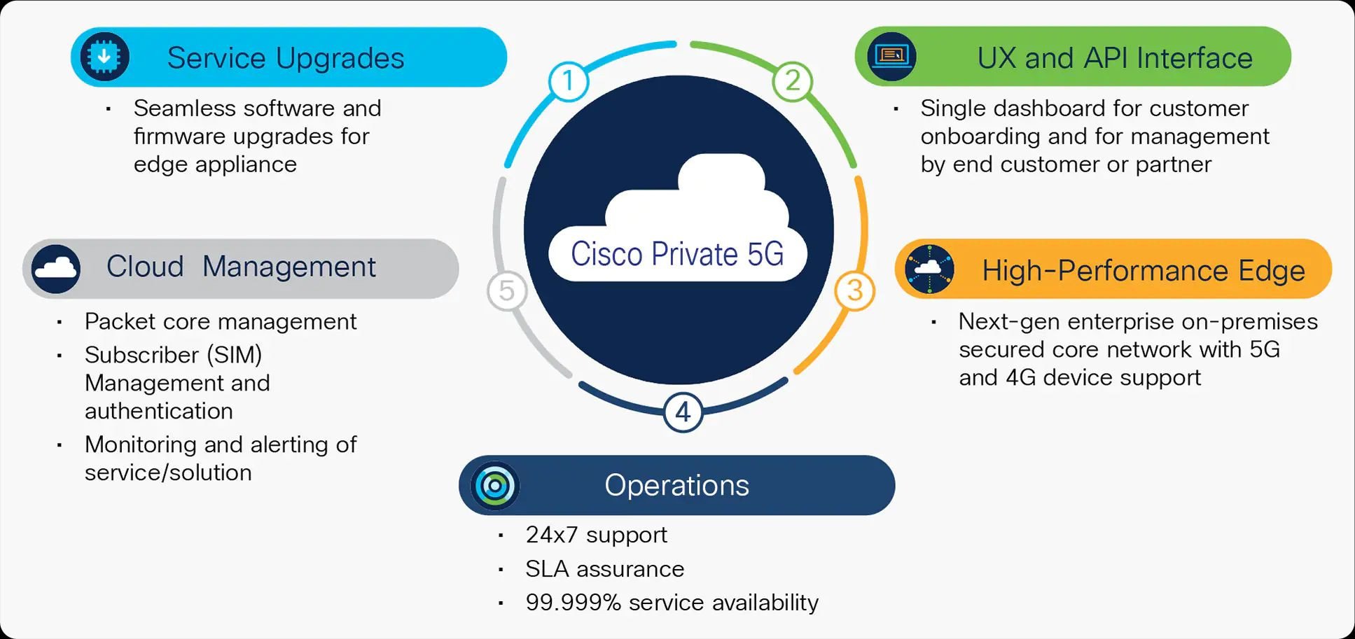 Cisco ve svém řešení klade důraz na integraci 5G s ostatními systémy. Pomocí jednoduchého portálu tak umožní správu všech sítí s jednotnými pravidly. Aplikace, uživatelé i zařízení tak podléhají stejným zásadám bez ohledu na to, zda se připojují přes kabel, Wi-Fi nebo privátní 5G.