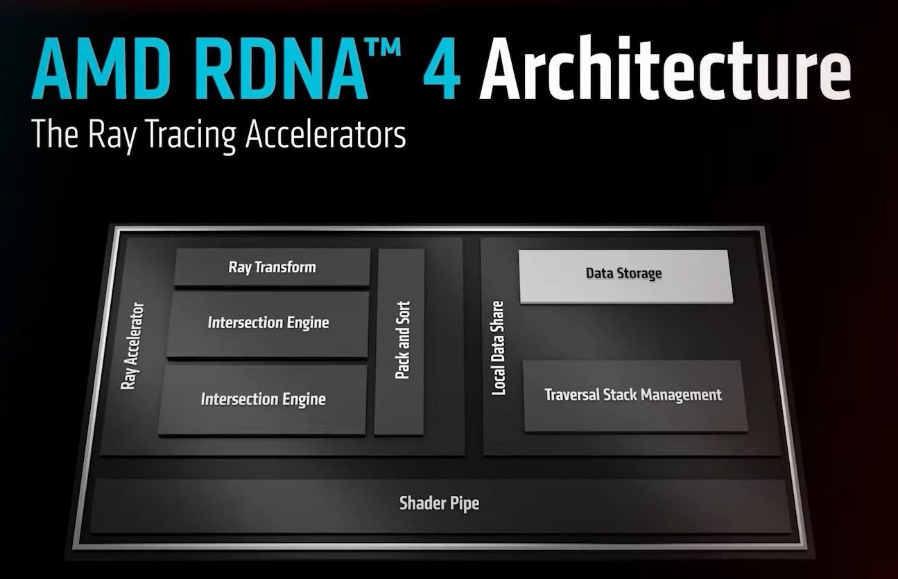 Čipy budou vybaveny také akcelerátory ray tracingu třetí generace, které nabídnou 2× vyšší propustnost ray tracingu na jednu CU jednotku. Podle AMD lze v tomto ohledu očekávat až 8× vyšší výkon oproti RDNA 3.