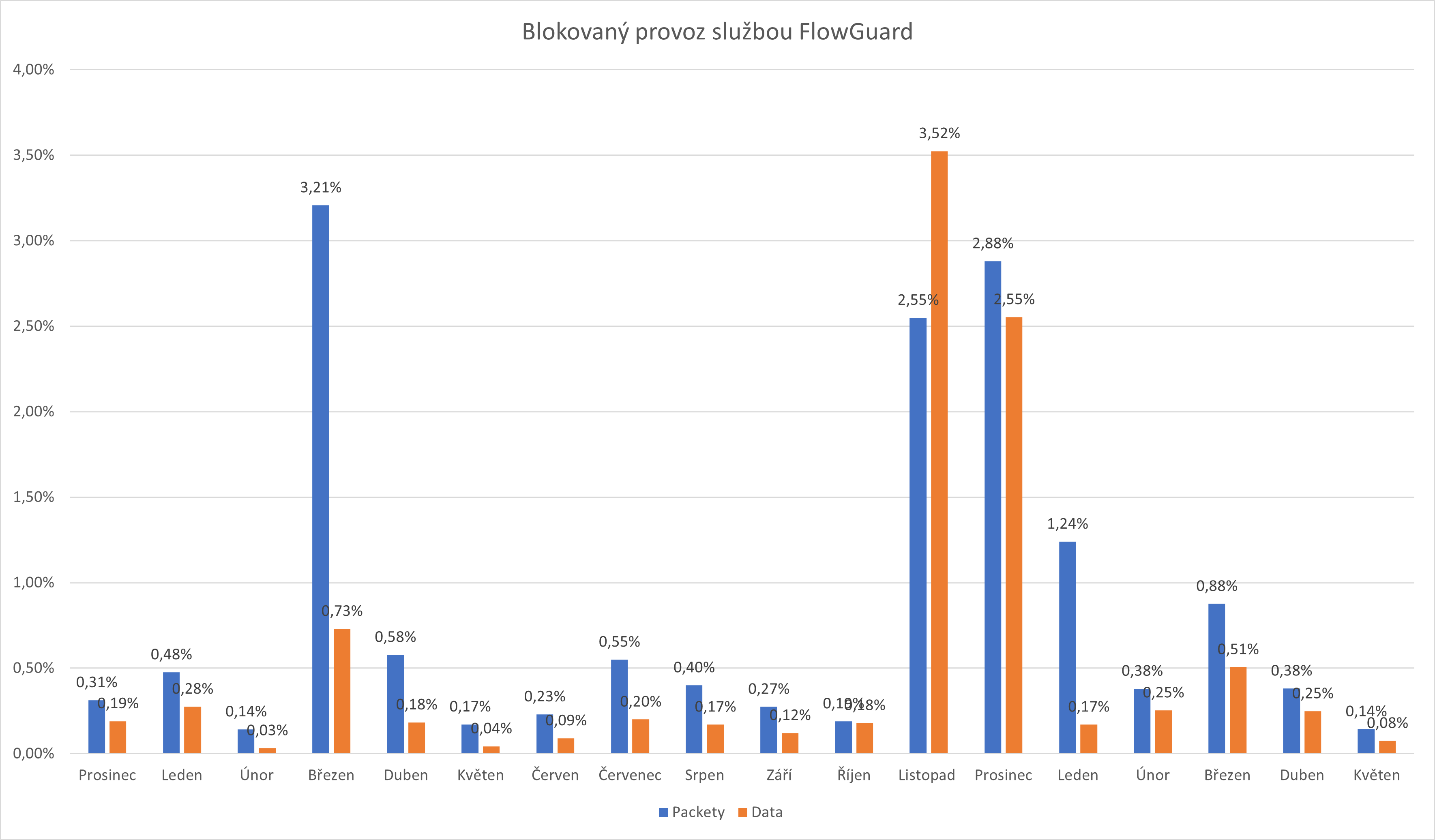 Údaje vyplývají z pravidelné měsíční analýzy statistik provozu služeb FlowGuard české společnosti ComSource, která se zaměřuje na kyberbezpečnost a síťovou infrastrukturu.