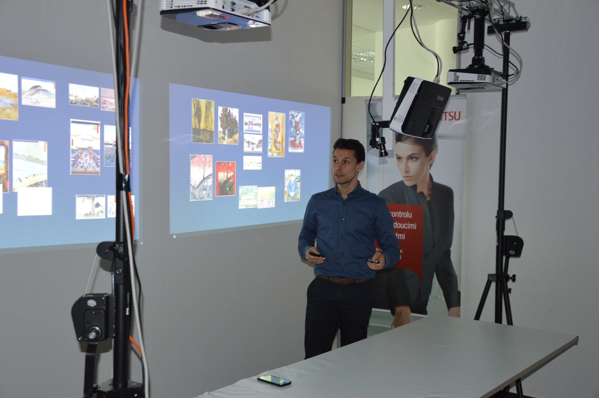 Digitální pracoviště nabývá u různých výrobců různých podob. My jsme měli možnost se blíže seznámit s řešením společnosti Fujitsu, které je založeno na propojení projektorů s kamerou, chytrých telefonů nebo tabletů a speciální obslužné aplikace, a má za cíl proměnit běžnou místnost v digitální prostor.