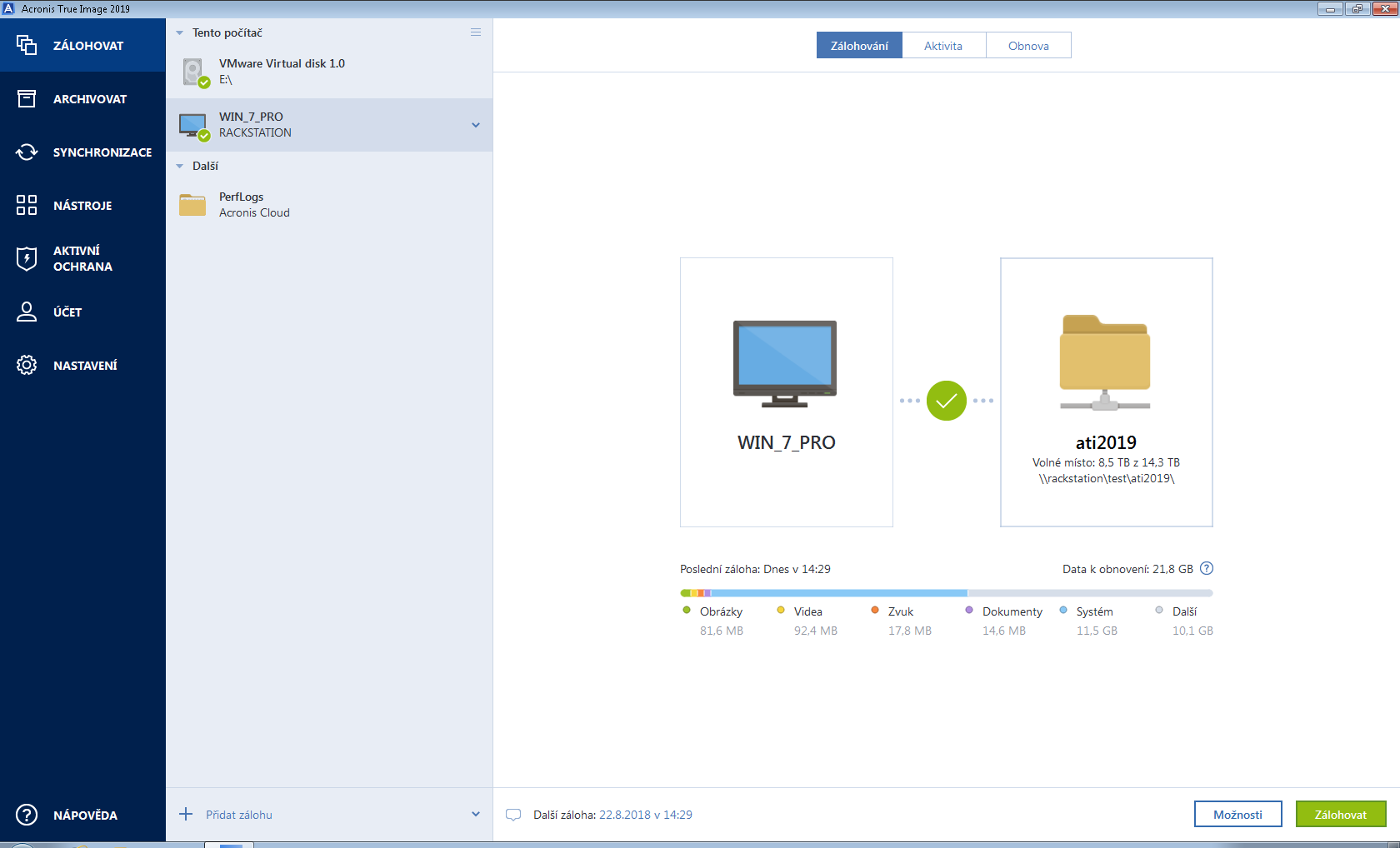 Domácí zálohování Acronis True Image 2019 s řadou praktických novinek