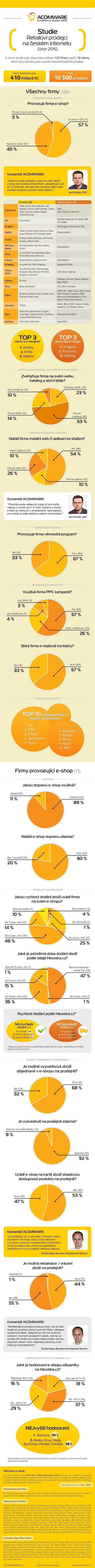 Společnosti zahrnuté do průzkumu dosahují ročního obratu přes 400 miliard korun a zároveň provozují přes 10 500 kamenných poboček. „Z našeho loňského výzkumu vyplynulo, že vlastní e-shop má jen necelá polovina firem. Aktuálně je to již 57 % obchodů,“ řekl Jan Penkala, CEO konzultační společnosti Acomware, a dodal: „Přestože jsme aktuální vzorek zkoumaných firem mírně navýšili, nové e-shopy se objevují i u firem analyzovaných v loňském roce – nově ho otevřely značky Esprit nebo Promod.“ Na internetu nicméně stále chybí prodejci drogerie, potravin nebo lékárny.