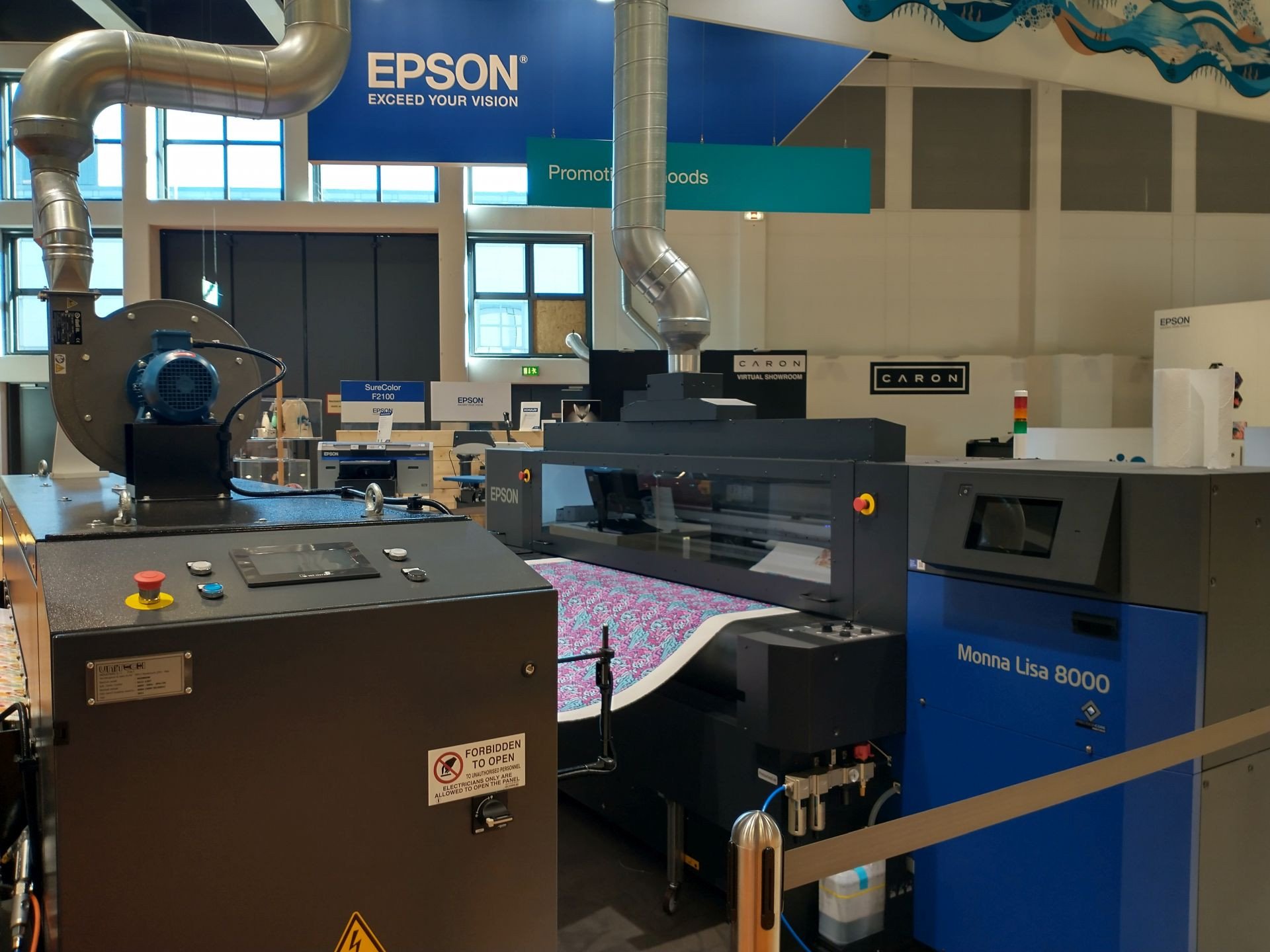 Každý den výstavy byla v provozu též nová generace digitální textilní tiskárny Epson Direct to Fabric, Monna Lisa ML-8000. Tato tiskárna byla navržena tak, aby byla flexibilní a udržitelná, a díky osmi nejnovějším tiskovým hlavám PrecisionCore dosahuje rychlosti tisku 155 metrů čtverečních za hodinu (600 × 600 dpi – dva průchody). Díky vysoké kvalitě tisku, produktivitě, stabilnímu provozu a minimálním prostojům umožňuje snadný provoz za přijatelnou cenu, takže je vhodná pro firmy, které chtějí přejít na digitální tisk. Tiskárna ML-8000 tiskne na bavlnu pigmentovým inkoustem ve spojení se sušičkou Unitech Mini Rainbow.