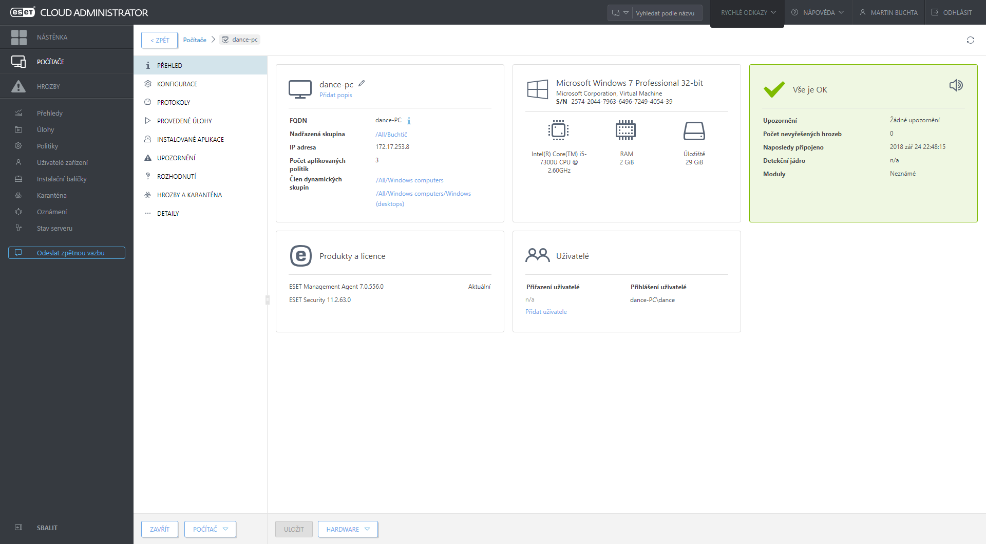 Administrativní nástroj má intuitivní rozhraní pro správu koncových zařízení a nabízí i další funkce, díky kterým mají administrátoři přehled o dění v síti a jsou informováni o případných bezpečnostních incidentech.