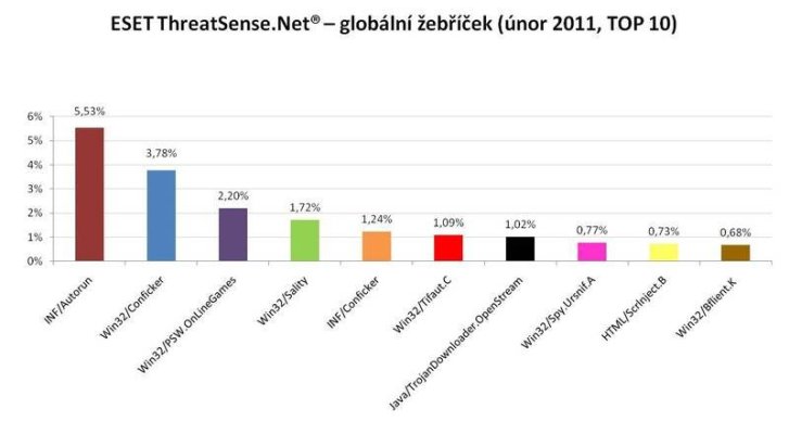 Statistice globálních hrozeb Eset ThreatSense.Net za únor vévodí malware INF/Autorun, který se šíří přes populární vyměnitelná média. Pro zabránění šíření malwaru zneužívajícího soubor Autorun.inf přitom stačí jen zakázat automatické spouštění vložených médií ve Windows, přičemž Windows 7 tuto možnost mají deaktivovanou přímo v základním nastavení.