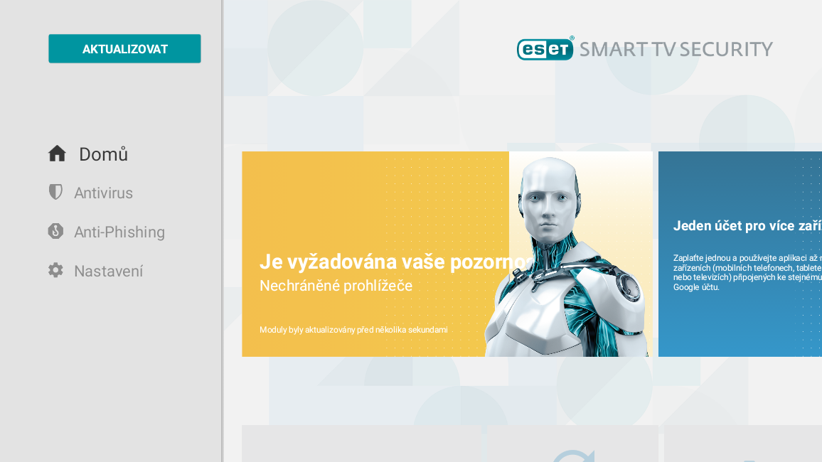 - antiphishing na ochranu uživatelů před pokusy o krádež citlivých osobních dat. Tato funkce bude k dispozici pouze v prémiové verzi aplikace ESET Smart TV Security.
